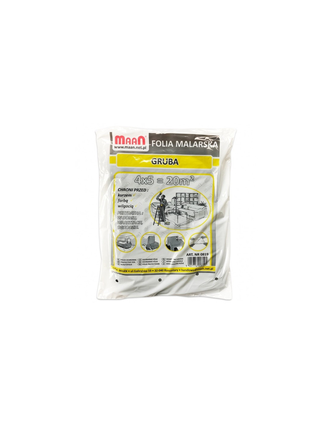Folia Ochronna Gruba - Maan 4m x 5m sztuka. Grubsza folia osłonowa o szerokim zastosowaniu przy zabezpieczaniu powierzchni samochodu.