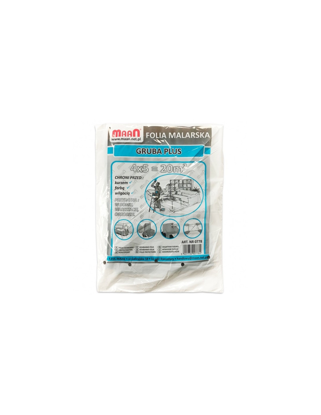 Folia Ochronna Gruba Plus - Maan 4m x 5m - karton 20szt. Gruba folia osłonowa o szerokim zastosowaniu przy zabezpieczaniu powierzchni samochodu.