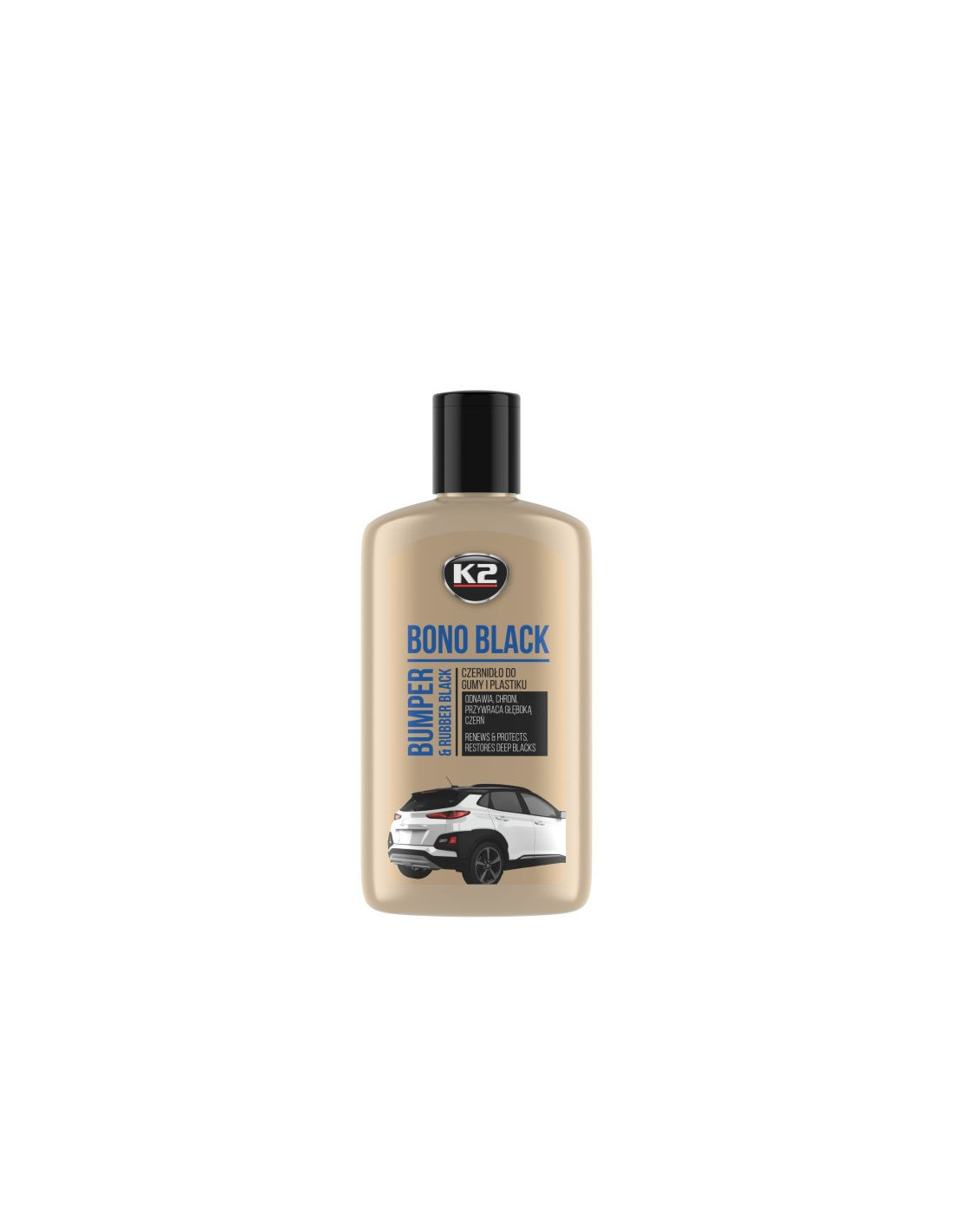Czernidło do gumy i plastiku BONO BLACK - K2 op. - 250ml Czernidło BONO BLACK: konserwuje i nabłyszcza opony, uszczelki gumowe i elementy z tworzyw sztucznych. Przywraca czyszczonym powierzchniom naturalny czarny kolor i spowalnia proces starzenia. S...