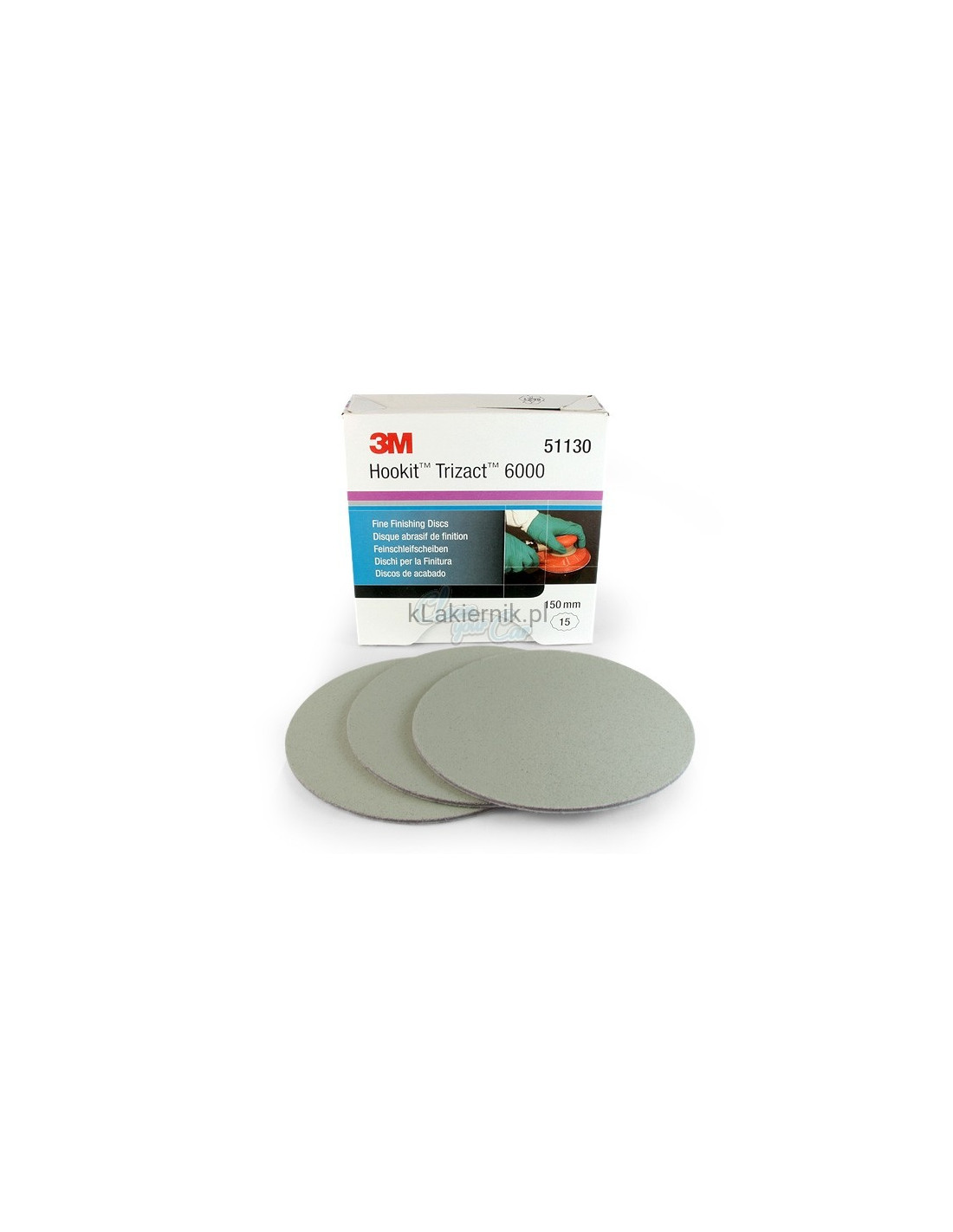 Krążki mikro-ścierne - 150mm - P3000 HOOKIT TRIZACT - 3M - sztuka - OZNACZENIE 3M: 50414 Sprawdzony sposób znacznego ograniczenia czasu i kosztów naprawy. Materiał ścierny TRIZACT zawiera unikalne struktury uformowane w kształt piramid, składające si...