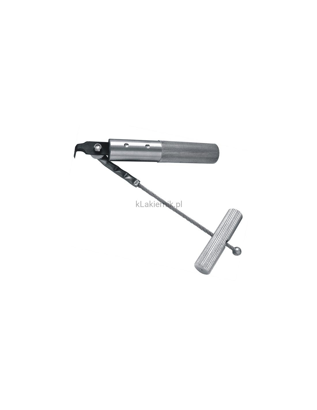 Nóż ręczny z ciągadłem, umożliwia szybkie wycięcie szyby przez jedną osobę po uprzednim demontażu lub wywinięciu uszczelki.