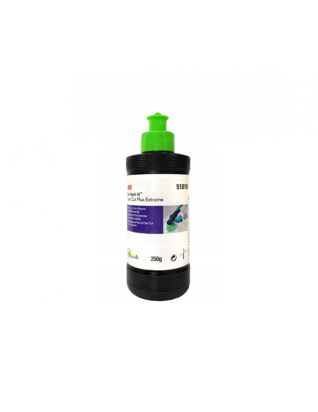 Gruboziarnista pasta polerska 3M™ Fast Cut Extreme, która jest profesjonalnym środkiem wykorzystywanym do zarysowań powstałych po wcześniejszym usuwaniu niedoskonałości powierzchni. Dzięki innowacyjnej formule bardzo dobrze sprawdza się podczas zgrubnego polerowania. Fast Cut Extreme jest oznaczony również kolorem zielonym nakrętki. Zaleca się stosowanie z zieloną gąbka polerską 3M.