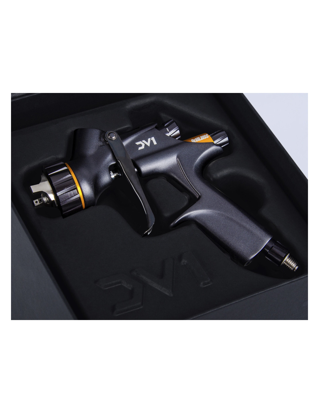 Pistolet Devilbiss DV1 (CLEARCOAT) jest dostępny z dyszami 1,1; 1,2 i 1,3 oraz głowicą HVLP DV1-C1 Plus przeznaczoną do aplikacji lakierów bezbarwnych oraz akrylowych lakierów barwionych. Pozwala uzyskać równomierny i stabilny natrysk oraz lepszą wydajność rozpylania, dzięki utrzymaniu stałej wielkości kropel w obszarze całego natrysku.