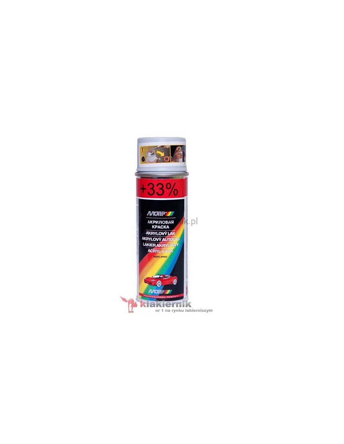 Podkład w sprayu jest łatwy do szlifowania, gdy jest suchy jak i mokry (zalecany papier ścierny o gradacji P400). Jest standardowym podkładem akrylowym dlatego można na niego nanosić lakiery wszystkich systemów. Podkłady firmy MOTIP cechuje wysoka jakość oraz wydajność.