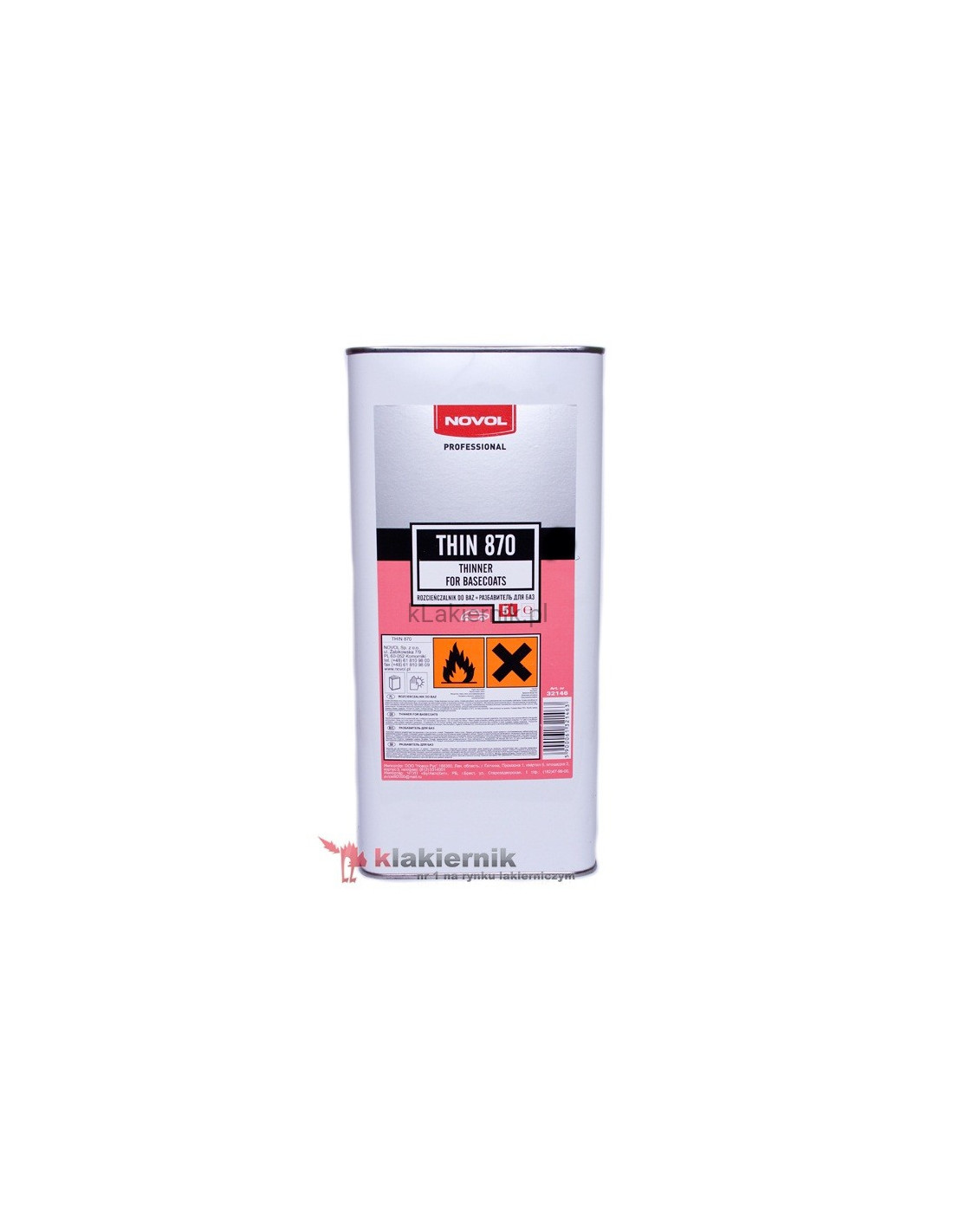 Rozcieńczalnik Bazowy THIN870 NOVOL op. - 5,0L Uniwersalny rozcieńczalnik do lakierów bazowych.Współpracuje z większością baz dostępnych na rynku.
