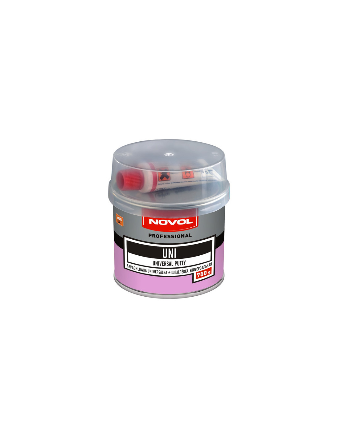 Szpachlówka Uniwersalna Wypełniająca UNI - NOVOL op. - 250g Cena zawiera utwardzacz Podstawowa szpachlówka wypełniająca. Stosunkowo twarda i o niewielkiej elastyczności, zalecana jest głównie do obróbki mechanicznej i niezbyt dużych powierzchni.