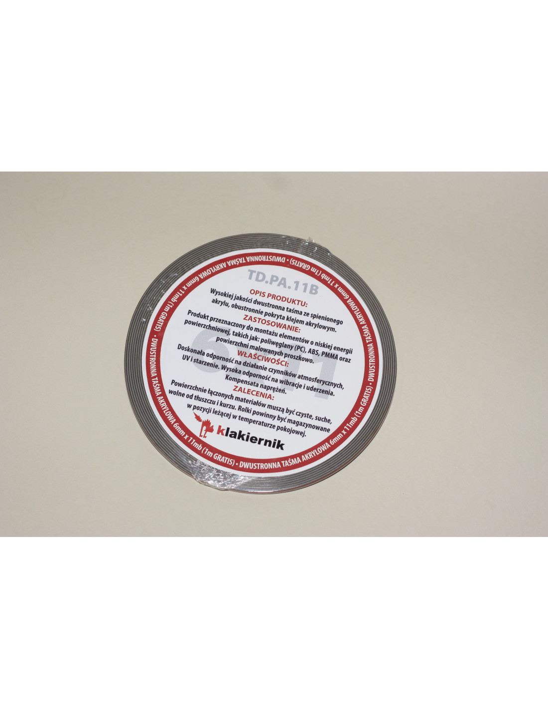Taśma dwustronna akrylowa 10mb + 1mb GRATIS - wysokiej jakości dwustronna taśma ze spienionego akrylu, obustronnie pokryta klejem akrylowym