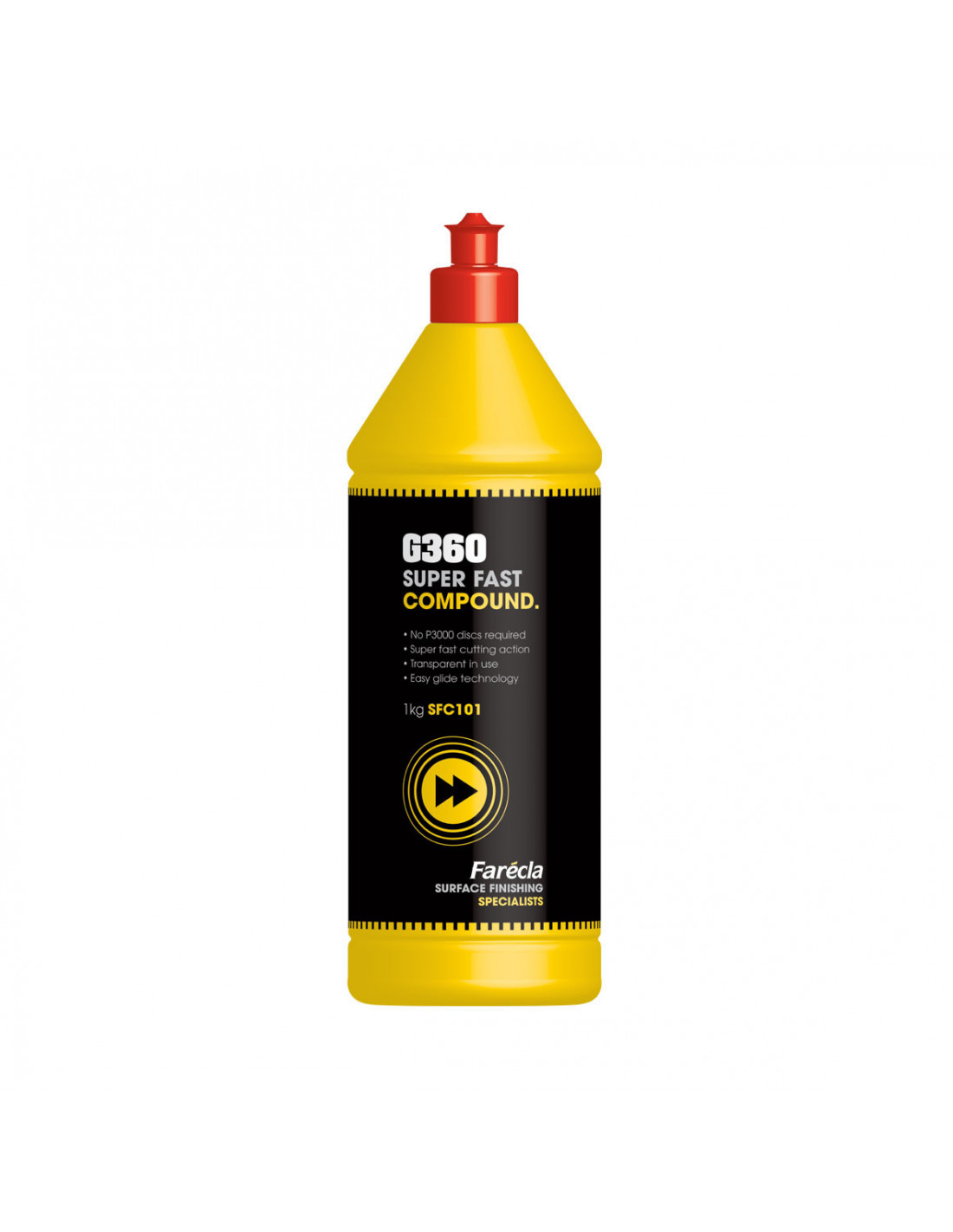 G360 Pasta w Płynie Super Fast w połączeniu z superścierną gąbką na rzep G Mop Super High Cut Pad doskonale rozprowadza się po powierzchni i usuwa ślady po polerowaniu P1500 łatwo i szybko. Produkt ten, całkowicie eliminuje konieczność użycia P3000, oszczędzając tym samym czas i pieniądze. Pozostaje przezroczysty podczas pracy, co pozwala na bieżąco oceniać jej efekty. Używając pasty G360 Super Fast z żółtą gąbką na rzep G Mop Flexible Yellow gabką polerską wyeliminujesz wszelkie hologramy i koliste ślady po polerowaniu. Do ciemniejszych, trudniejszych w wykończeniu kolorów dodatkowo możesz użyć emulsji G360 Super Fast Finish z czarną gąbką na rzep G Mop Flexible. Usuniesz pozostałe drobniejsze rysy i znacząco podniesiesz poziom połysku.